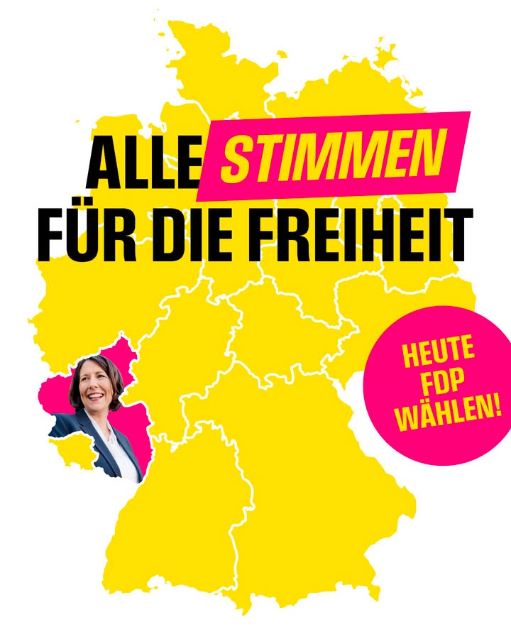 Heute gilt es in Rheinland-Pfalz: Alle Stimmen für die FDP Rheinland-Pfalz und Spitzenkandidatin Daniela Schmitt! Seit zehn Jahren tragen wir Freie Demokraten Verantwortung in der Landesregierung. Und wir haben gezeigt, dass wir gestalten können. Mit einer erfolgreichen Bilanz im Gepäck wollen wir weiter für Fortschritt sorgen. Wir setzen dabei auf einen wettbewerbsfähigen Wirtschaftsstandort, einen handlungsfähigen Rechtsstaat, qualitativ hochwertige medizinische Versorgung, beste Bildung von der Kita bis zur Hochschule und ein Land mit leistungsfähiger, moderner Infrastruktur. Deshalb heute FDP. Die Kraft, die es braucht. 💪